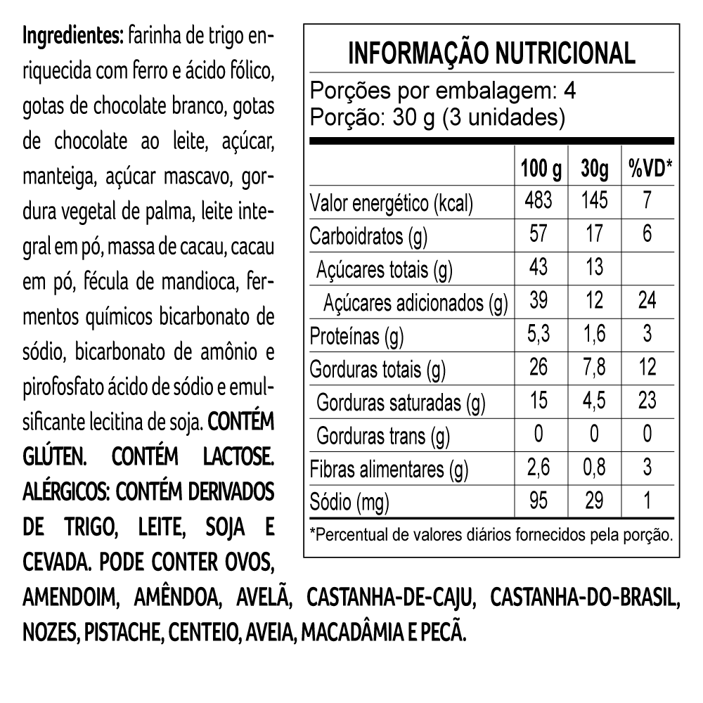 Cookies macios de chocolate com gotas ao leite e branco, perfeitos para qualquer momento.